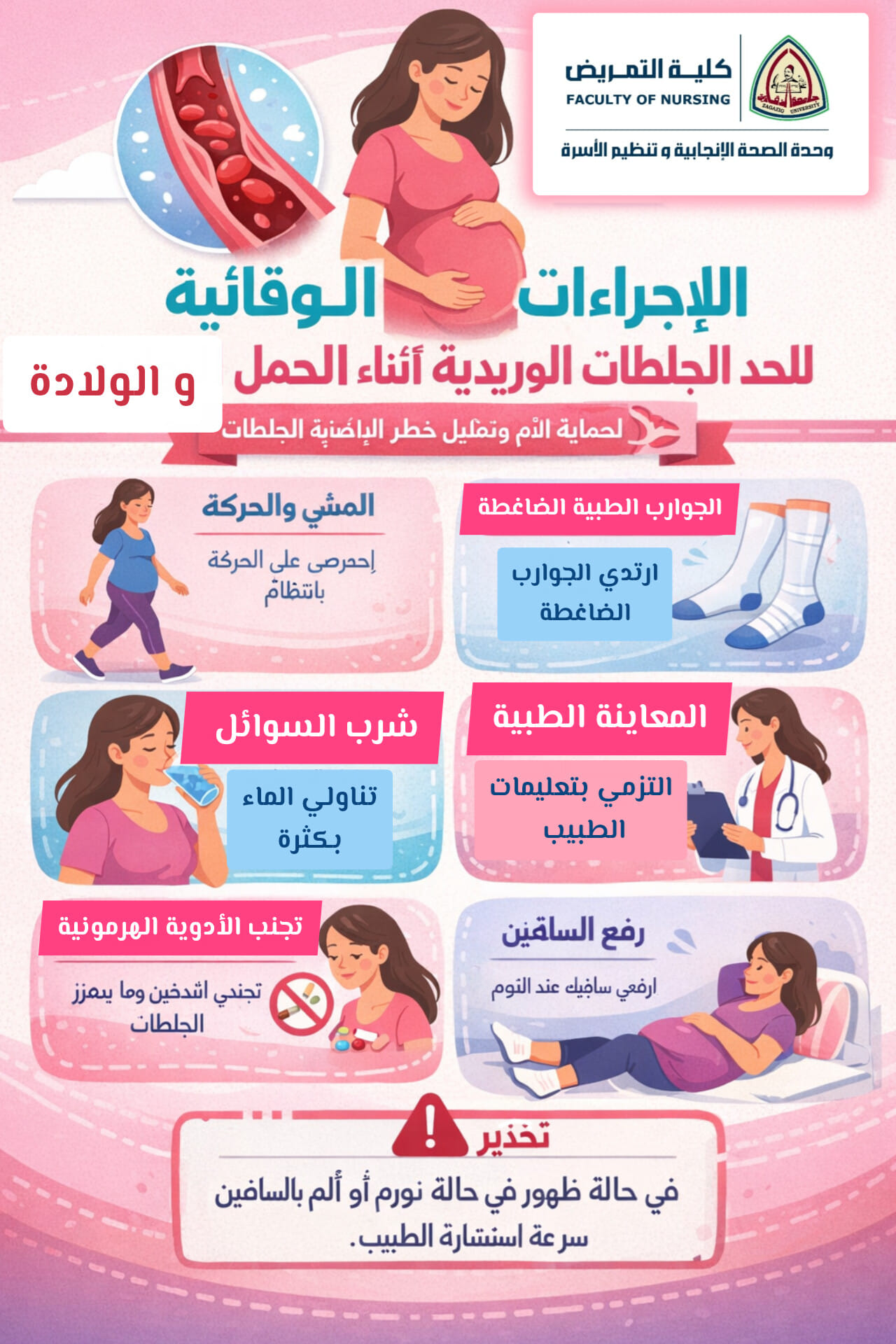 عقد ندوة تثقيفية للطلاب بعنوان "الإجراءات الوقائية للحد من الجلطات الوريدية أثناء الحمل والولادة" يوم الثلاثاء الموافق ٣١ مارس ٢٠٢٦